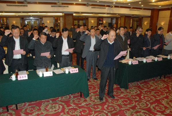 11月4日下午,济宁市国资委组织召开会议,学习贯彻十八届五中全会和中国共产党纪律处分条例精神,深入推进“三严三实”专题教育,安排部署深化国资国企改革发展工作。济宁市国资委机关全体人员及市管企业党政正职领导人员、纪委书记参加会议。济宁市国资委主任、党委书记何锡明主持会议并讲话。与会全体人员重温入党誓词。