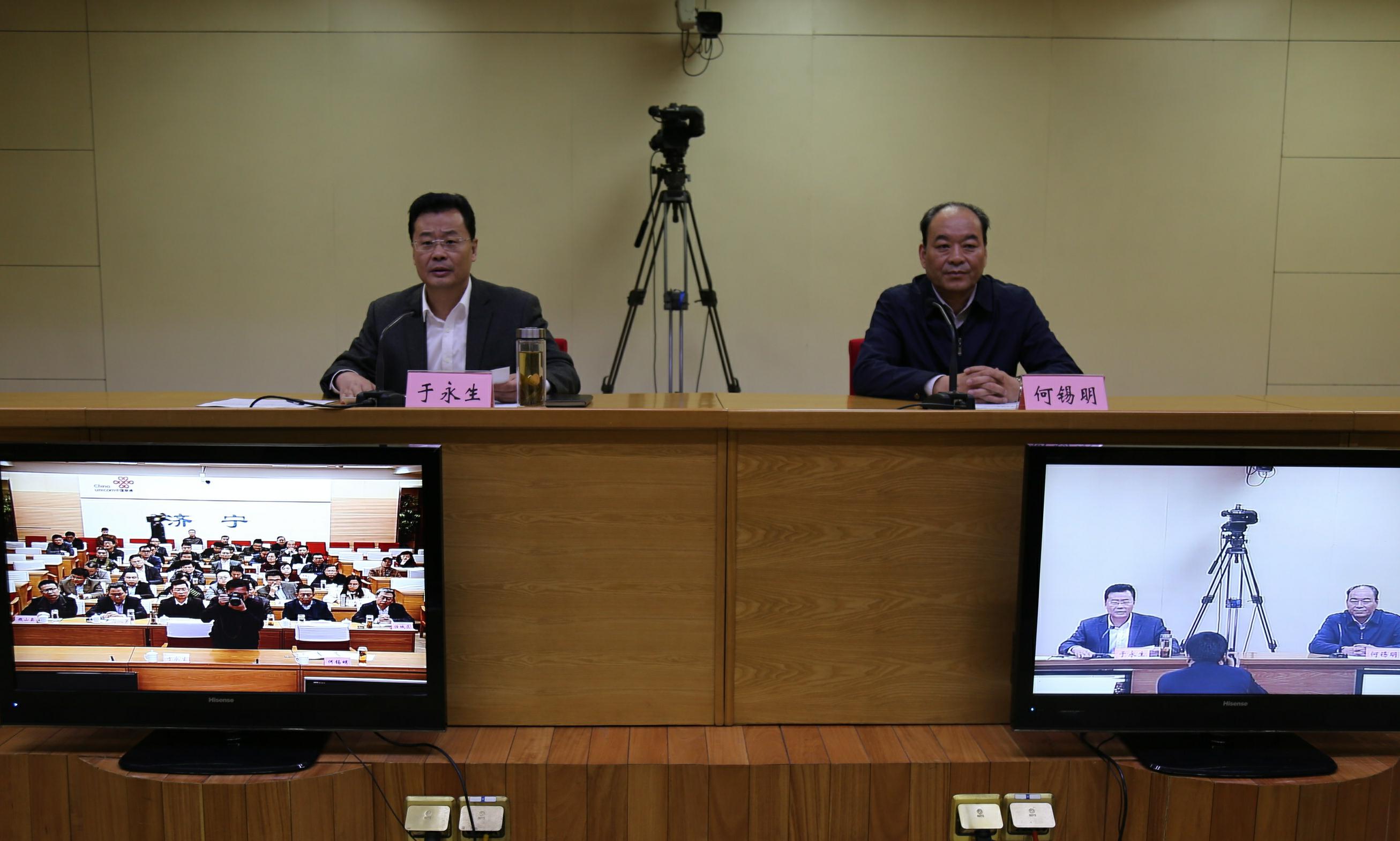 全省视频会议结束后,济宁市接着召开贯彻落实会议,市国资委主任何锡明主持,市委常委、常务副市长于永生作了重要讲话。