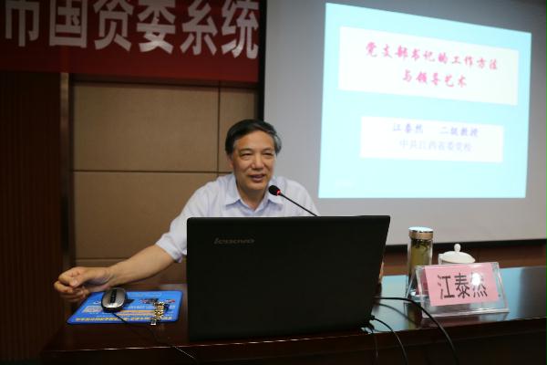 江西省委党校党史党建教研部副主任江泰然作了《党支部书记的工作方法与领导艺术》的专题教学,江教授从党支部书记的地位、党支部书记的职责和工作目标、党支部书记的工作方法与领导艺术、怎样当好党支部书记四个方面对党支部书记的工作职责进行了系统讲解。