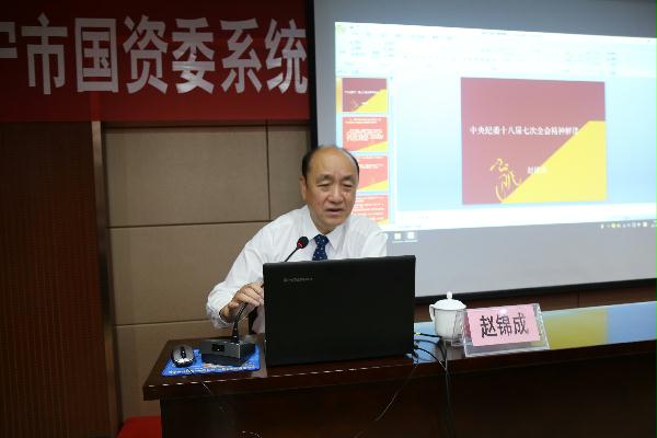 江西省人大内司委副主任、原江西省纪委常委赵锦成作了《以抓铁有痕、踏石留印的决心推进全面从严治党—中纪委十八届七次全会精神解读》的专题教学,赵主任从深刻领会习近平总书记在十八届中纪委七次全会上的重要讲话精神、十八大以来采取的反腐措施、全面从严治党的新成就等六个方面对全会精神进行了解读,并对王岐山书记对中纪委工作的总结及部署进行了回顾。