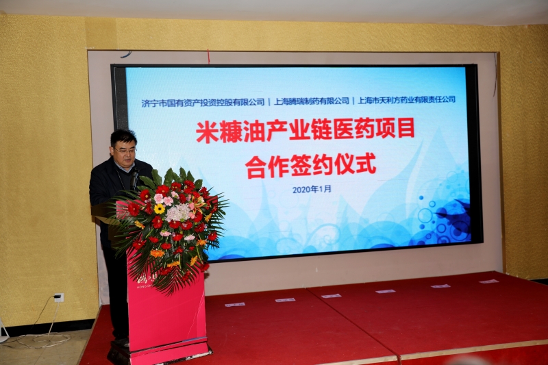 丰家雷在致辞中指出,市国资委积极贯彻市委、市政府决策部署,不断加大“双招双引”力度,积极搭建市属企业和行业知名企业对接平台,推动双方之间良性互动、合作交流。上海腾瑞制药有限公司作为一家专注于出品生物药、原料药和化药的高新技术企业,拥有多项全球及国家专利授权,推进了民族工业自主创新能力的发展。上海市天利方药业有限责任公司在米糠油深加工行业深耕多年,初提取米糠油原料全国市场占有率60%以上,具有行业的经验优势和技术的绝对领先,相信在不远的将来,一定可以在济宁构建米糠油深加工药品研发、生产、营销领域的医药全产业链。