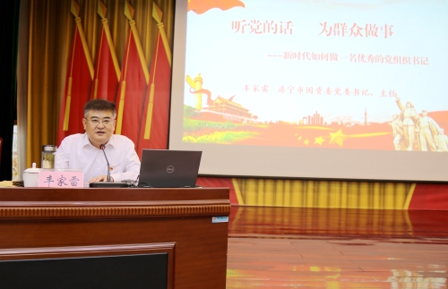 丰家雷结合自己对党史的独特理解及多年基层工作经历,从“中国共产党的历史是一部波澜壮阔的奋斗史”、“新时代基层党组织书记任重道远”、“做一名可亲可爱的党组织书记”三个方面进行了讲授。他认为,中国的历史,是由强盛到衰落再到复兴的一个过程,实现中华民族伟大复兴,成为近代以来中华民族共同的、最伟大的梦想,中国共产党的诞生,使中国革命有了坚强领导核心,中国人民前所未有地组织起来,尤其是在抗击新冠肺炎疫情的斗争中,中国人民万众一心、众志成城,在党的领导下,凝聚起强大合力,展现了中国力量、中国精神、中国效率。