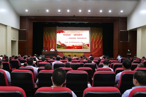 6月23日上午,市国资委党委书记、主任丰家雷同志以《听党的话 为群众做事——新时代如何做一名优秀的基层党组织书记》为题为全市国资系统企业党员上了一堂精彩的党课。市国资委党委副书记、副主任岳修广主持活动。
