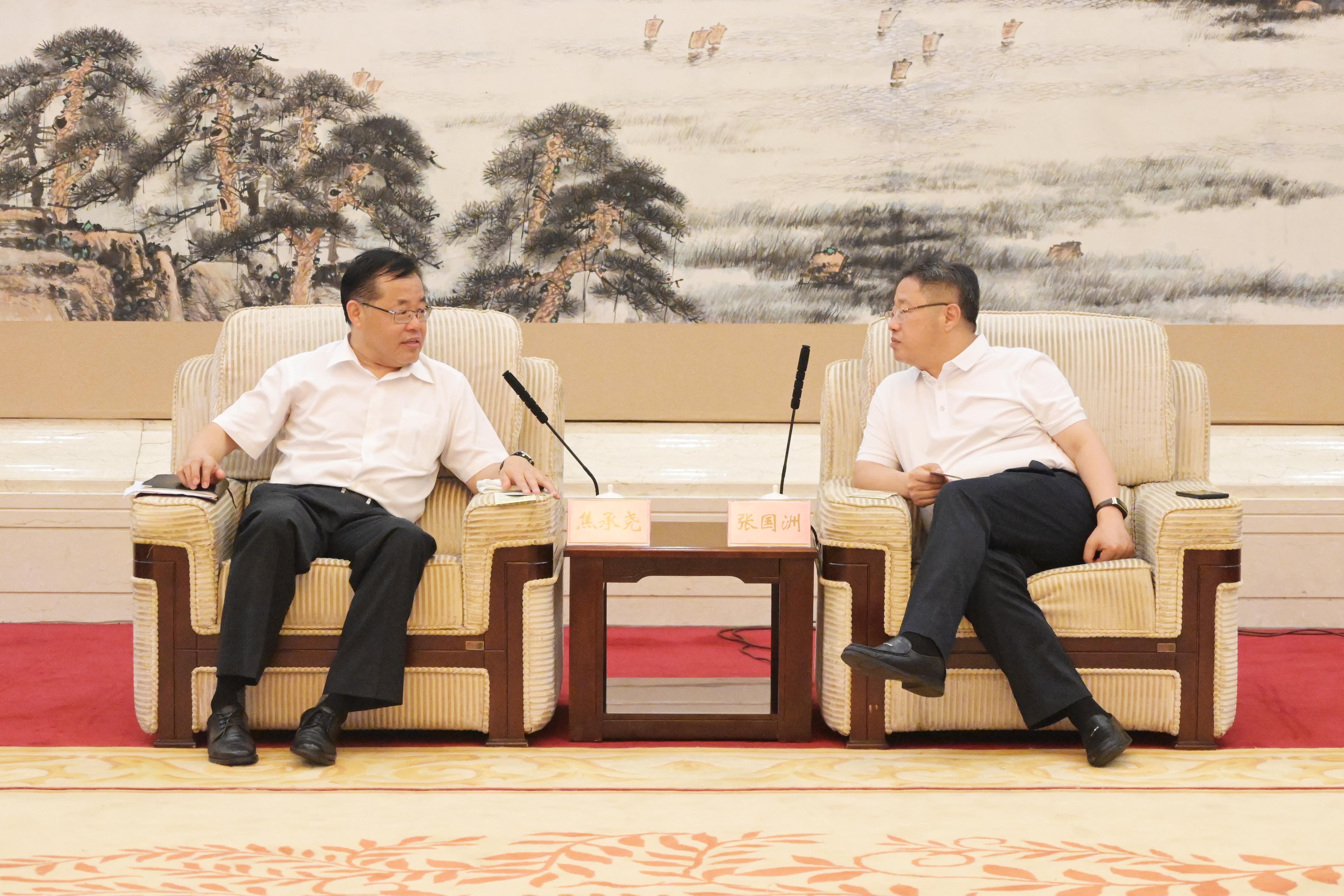 8月18日,郑州煤矿机械集团董事长焦承尧一行到集团公司考察调研。市副市长张国洲会见了焦承尧一行。市国资委党委书记、主任丰家雷,济宁能源党委副书记、总经理张广宇参加活动。