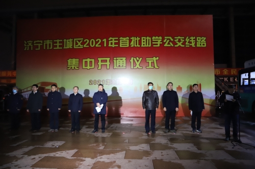 2021年3月1日,我市在新体育馆举行主城区2021年首批助学公交线路集中开通仪式。副市长张国洲,济宁公交集团党委书记、董事长马中阁参加活动。市政府副秘书长卞延军主持开通仪式。