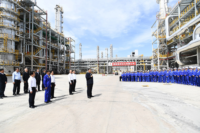 13日上午,习近平首先来到国家能源集团榆林化工有限公司,了解循环经济煤炭综合利用项目规划建设运行情况。在中心控制室,习近平观看项目产品展示,对企业坚持创新发展,坚持安全、稳定、清洁运行的做法表示肯定。随后,习近平到年产40万吨乙二醇项目现场察看,询问煤化工深度发展有关情况,同企业职工代表亲切交流。他强调,榆林是国家重要能源基地,为国家经济社会发展作出了重要贡献。煤炭作为我国主体能源,要按照绿色低碳的发展方向,对标实现碳达峰、碳中和目标任务,立足国情、控制总量、兜住底线,有序减量替代,推进煤炭消费转型升级。煤化工产业潜力巨大、大有前途,要提高煤炭作为化工原料的综合利用效能,促进煤化工产业高端化、多元化、低碳化发展,把加强科技创新作为最紧迫任务,加快关键核心技术攻关,积极发展煤基特种燃料、煤基生物可降解材料等。
