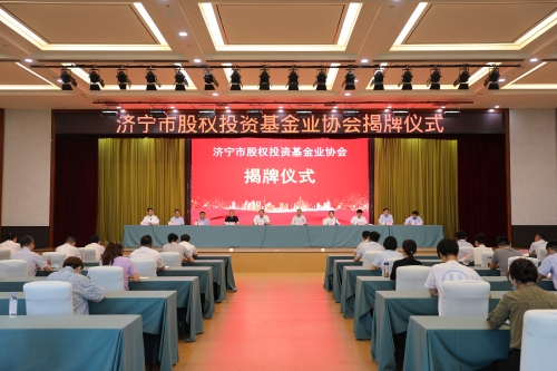6月14日,济宁市股权投资基金业协会揭牌仪式在济宁国投大厦举行,省基金业协会会长李文峰,市政府副市长刘东波,市政协副主席、市太白湖新区党工委书记展鑫出席仪式,市政府党组成员、副秘书长高冬青主持仪式,市国资委党委书记、主任丰家雷,市地方金融监督管理局党组书记、局长董宏,市太白湖新区管委会主任刘昭立,市财政事务服务中心党委委员、副主任金锐社,济宁国投党委书记、董事长虢洪增参加仪式。