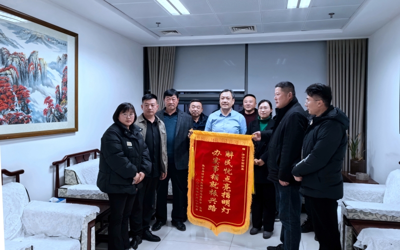 1月3日,鱼台县清河镇常务镇长屈小东、王楼管区书记胡云峰同志与其他代表一行到市国资委,送来一面“解民忧点亮指明灯 办实事铺就振兴路”的锦旗,随后进行了座谈交流。市国资委党委书记、主任张华山及有关科室同志参加座谈。