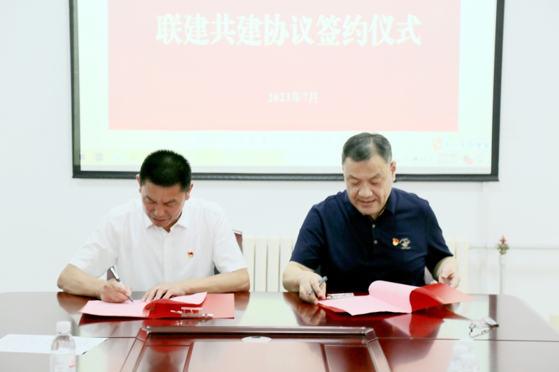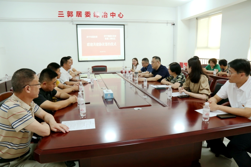 社区党建联建座谈会上,按照“资源共享、优势互补、文明共建、互惠共赢”的原则,双方围绕社区党建共创、基层治理、民生实事等方面进行深入座谈交流,市国资委党委书记、主任张华山代表市国资委与洸河街道三郭社区书记毕卫星签定了《共驻共建协议书》。