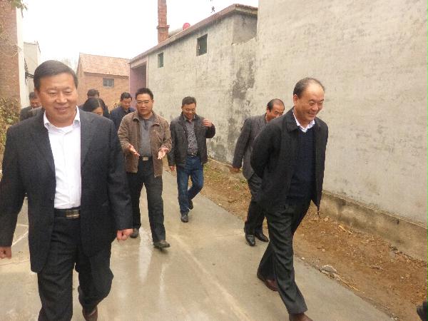 市国资委和县、镇领导与村班子共同察看硬化街道